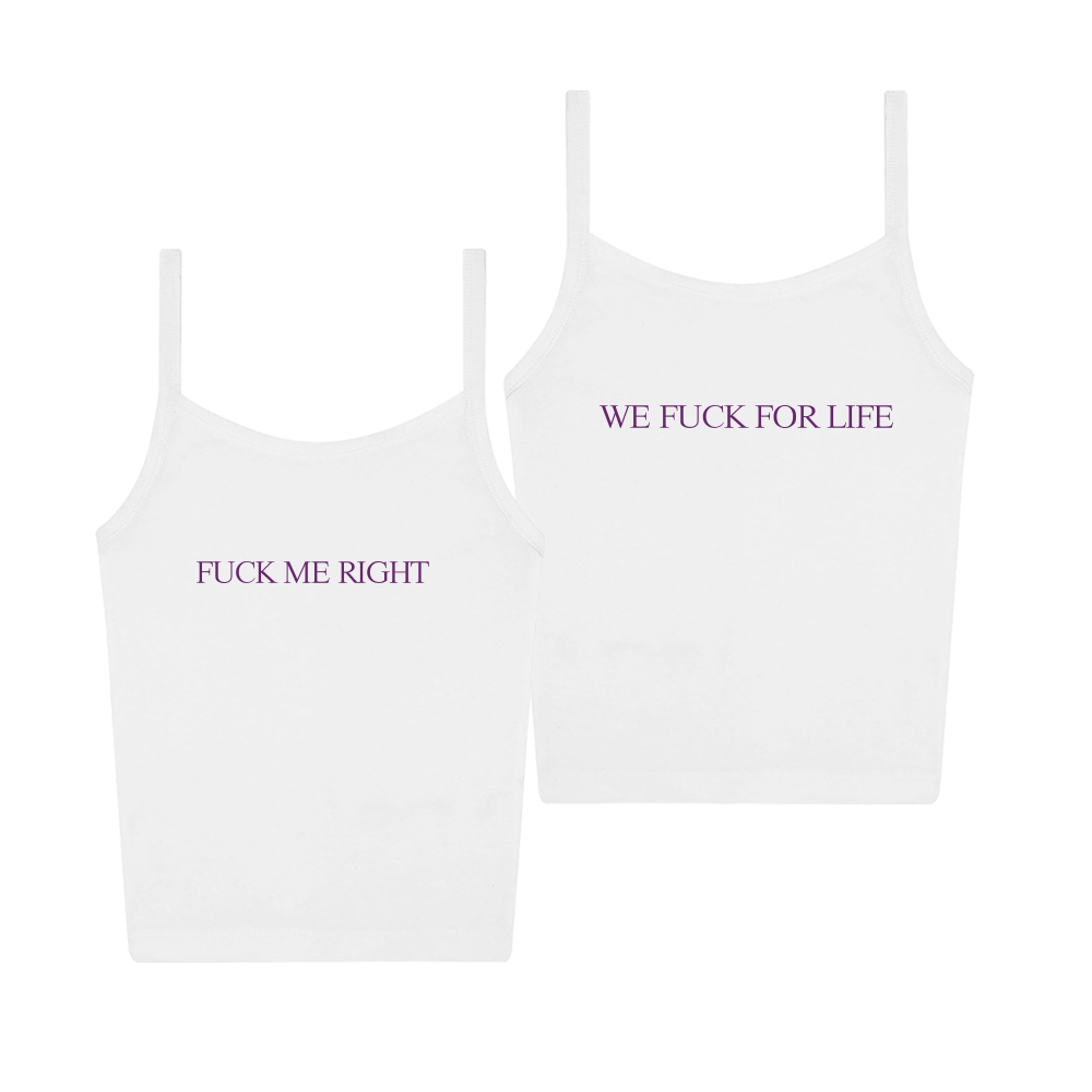 Fuck Me Right artwork on a white LA Apparel tank top.